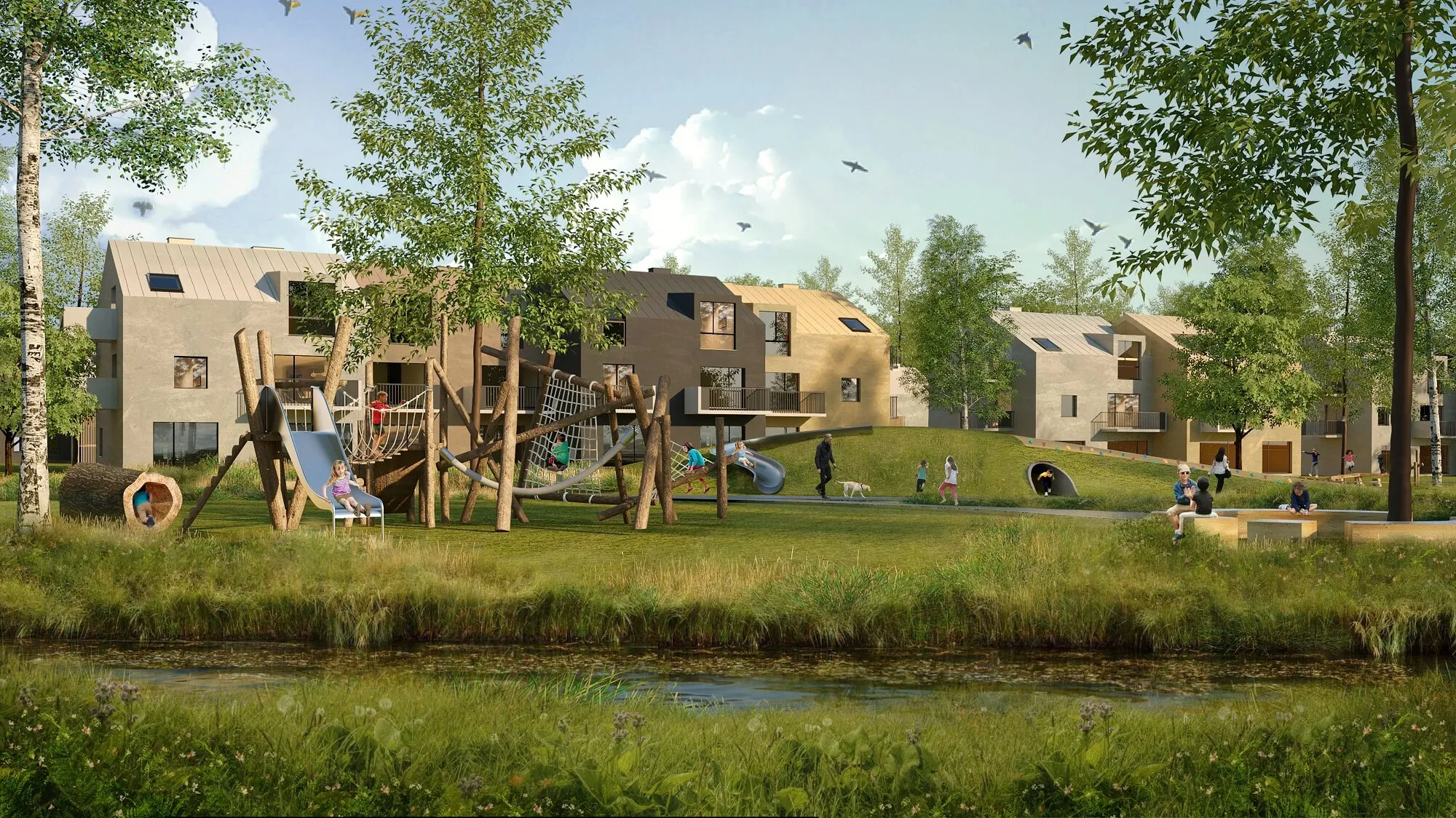 Mostki to osiedle łączące wygodę życia z bliskością natury. Ekologiczne rozwiązania, funkcjonalna architektura i przestrzeń sprzyjająca aktywnościom oraz budowaniu relacji sąsiedzkich – to miejsce na lata.